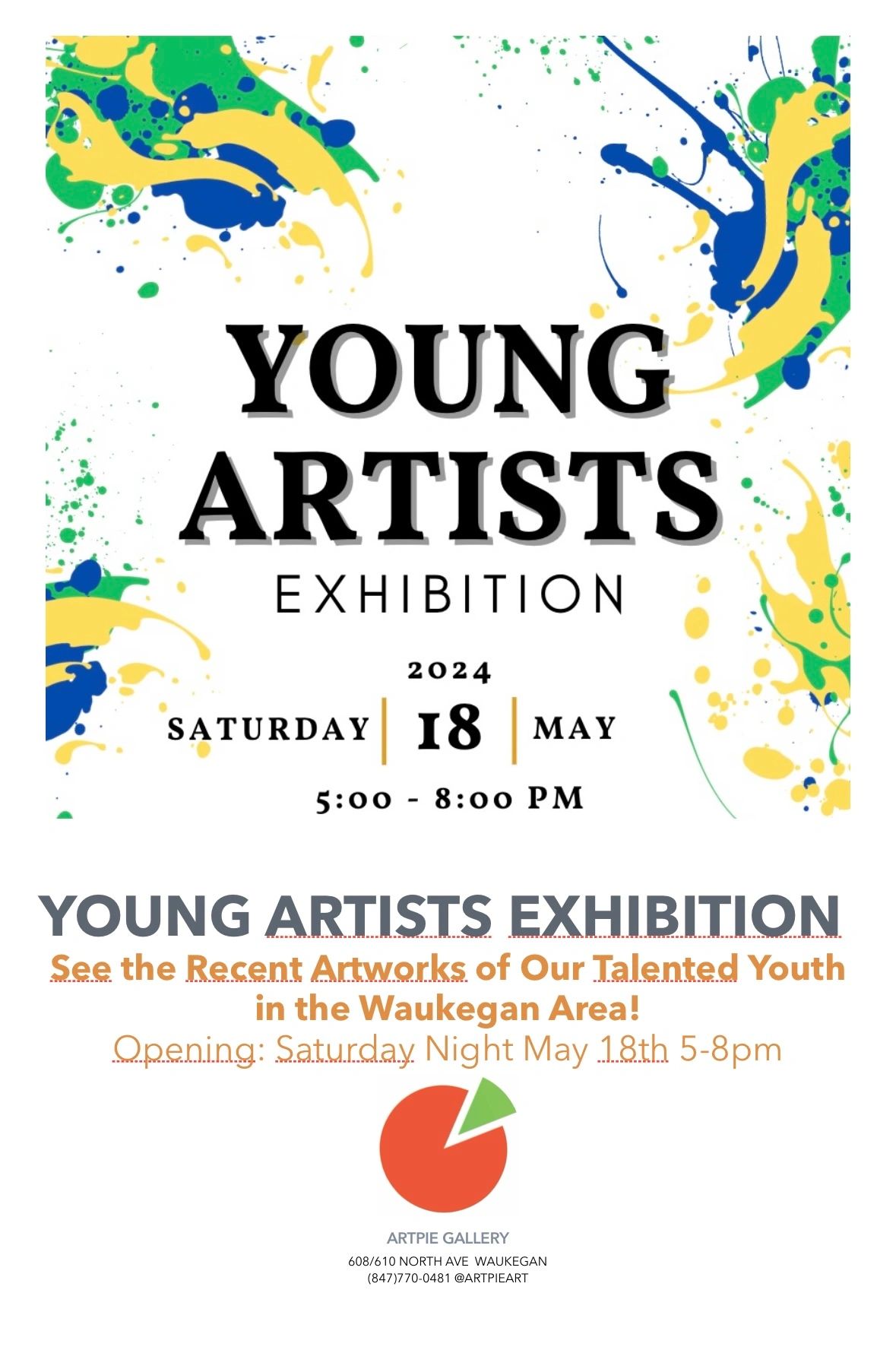 At Artpie we try to focus on making the maximum positive effort for our community through creative endeavors. Helping artists create life enhancing art experiences and events helps us affect change in underserved areas. Featured in this photo is the Kids Art Show, February 2023 curated by Luke McFadden. Waukegan area young artists of all ages displayed a fantastic collection of inspiring artwork!